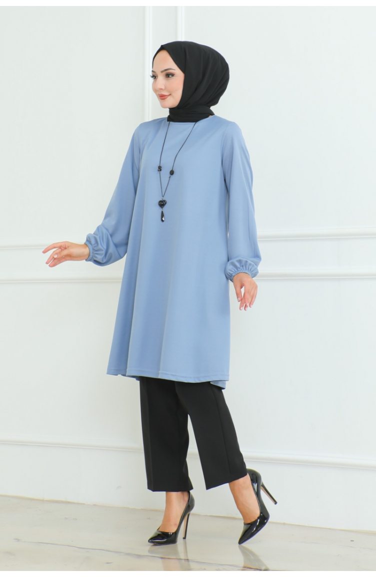 Oversize Krep Tunik 43-02 Bebek Mavisi